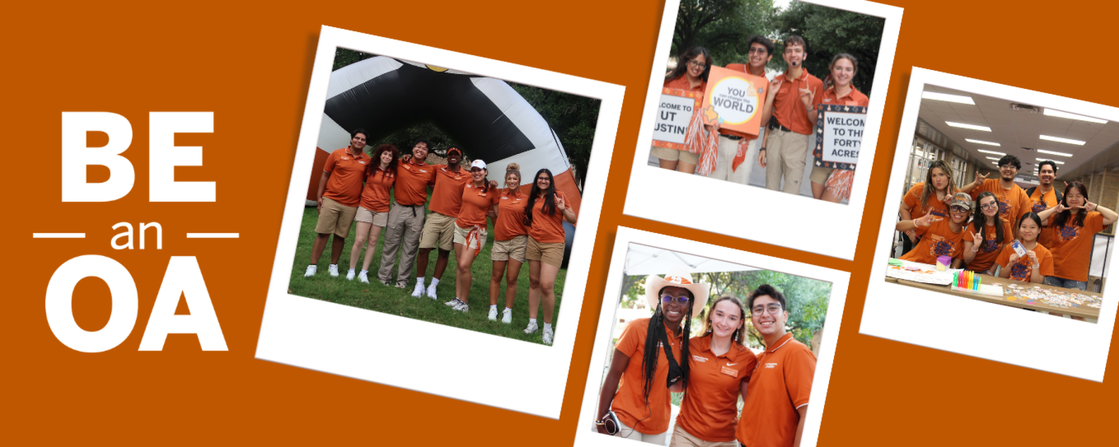 Serving as an Orientation Advisor (OA) provides the opportunity to engage fellow Longhorns in one of the most important times of their college career as they transition to campus and register for classes. Through their commitment to serving the University, OAs will receive in-depth personal and group leadership development, enhanced peer relationship-building techniques, training on University traditions and history and job-specific skills. Additionally, OAs receive peer academic advising training from academic counselors within respective colleges.